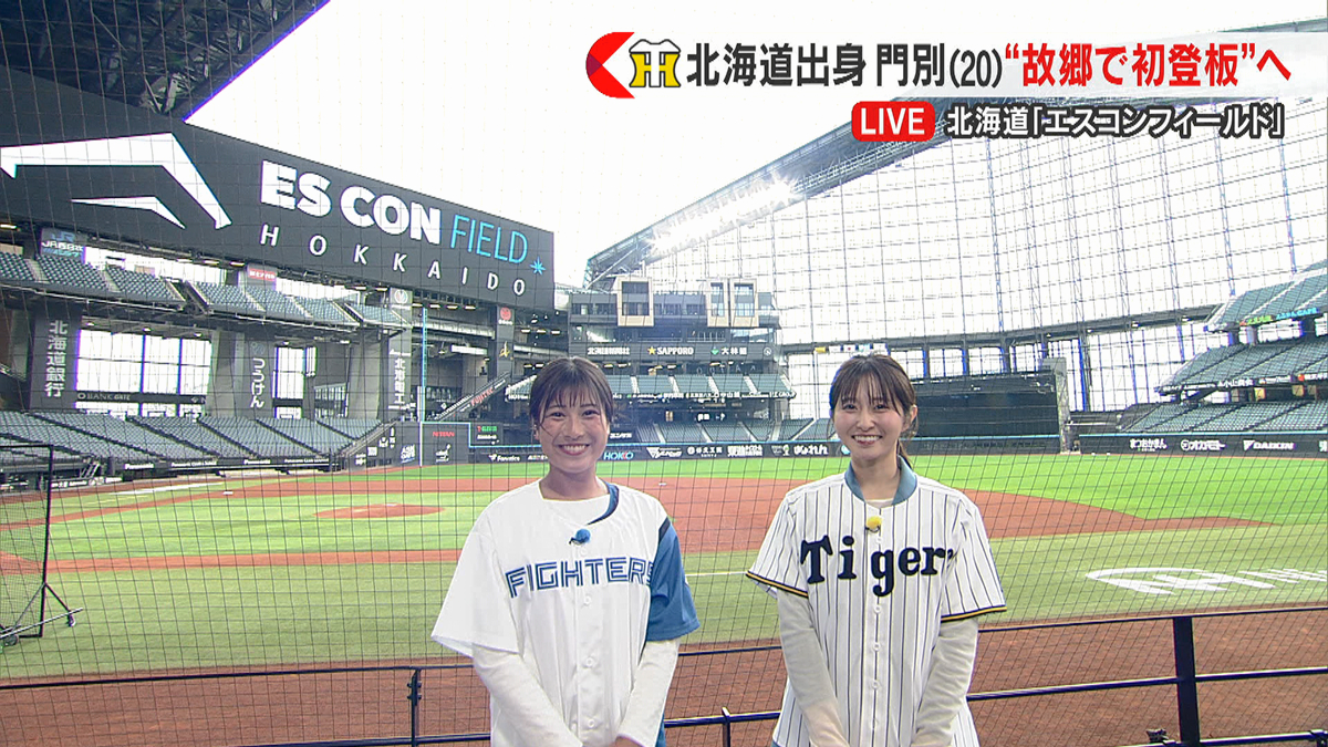 STVどさんこワイド朝から佐々木美波アナウンサーが、YTVす・またん!から佐藤佳奈アナウンサーが決戦の地エスコンフィールドHOKKAIDOから日本ハムファイターズ・阪神タイガースの注目情報を届けました。この放送はSTVが制作し、6時10分頃からYTVす・またん!向けに実施し、6時35分頃からSTVどさんこワイド朝向けに実施しました。